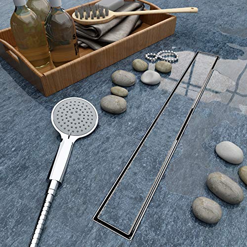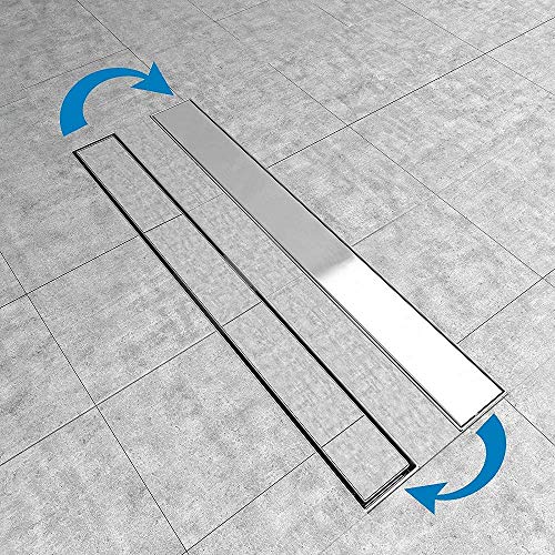 AICAIT Canaletta Scarico Doccia Canalina Scarico Doccia a Pavimento Piastrellabile Pannello 2 in 1 in Acciaio Inossidabile per Box Doccia Bagno Piscina Drenaggio 90 cm