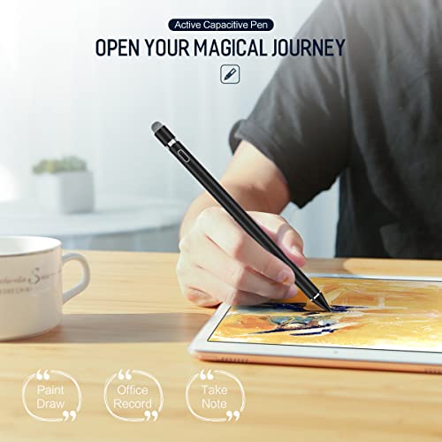 AICase Active Stylus Pen,Penna Capacitiva Attiva, Punta Fine(1.45mm) Active Stylus Stilo Universale per Qualsiasi Touch Screen,10 Ore Continue Work & 30 Giorni di Standby,nero