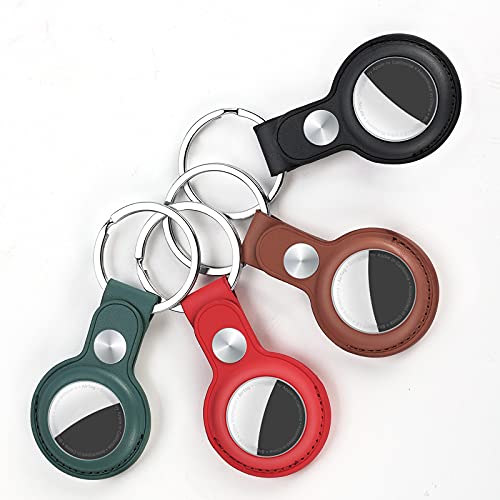 AICase 4 pack portachiavi protettivo in pelle compatibile con Apple AirTag, copertura con portachiavi/portachiavi per gatto, cani, portafoglio bagagli e borsa Marrone+Nero+Rosso+Verde