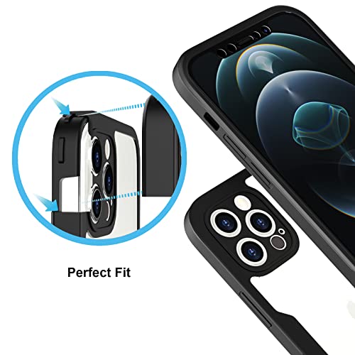 AICEK Compatibile con Apple iPhone 12 PRO Cover, 360 Gradi Full Body Custodia per iPhone 12 PRO Bumper Case Cover e Pellicola Schermo Protettivo Screen Protector Antiurto Nero