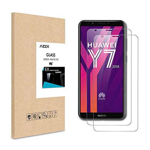 AICEK 2 Pack Huawei Y7 2018 Pellicola Protettiva, Huawei Y7 2018 Screen Protector Toccare Pellicola Protettiva in Vetro temperato per Huawei Y7 2018 Vetro Trasparenza