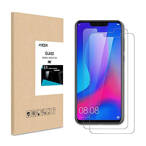 AICEK 2 Pack Huawei P Smart Plus Pellicola Protettiva, Huawei P Smart Plus Screen Protector Toccare Pellicola Protettiva in Vetro temperato per Huawei P Smart + Vetro Trasparenza