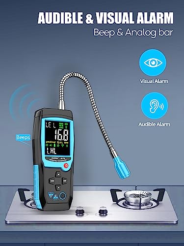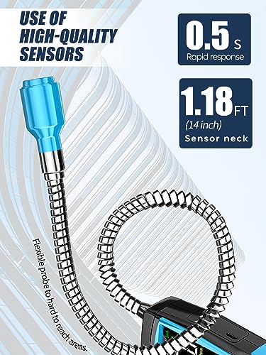 ➤ SONDA FLESSIBILE FACILE DA USARE - Con un collo d'oca flessibile di 17 pollici (piegabile in qualsiasi direzione), il rilevatore di fughe di gas portatile consente di accedere facilmente a zone difficili da raggiungere, come condutture del gas naturale, serbatoi di stoccaggio del propano, caminetti a gas, fognature, scantinati, camper e altri spazi ristretti. Può essere trasportato ovunque per trovare le perdite all'aperto o al chiuso.