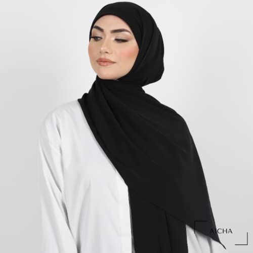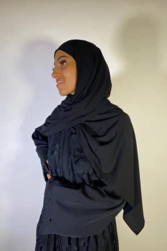 Aicha Hijab in seta di medina da infilare, per presenza, con cappello, da donna, musulmana, Foulard di qualità, opaco, leggero, riaffinata e discreta, 200 x 70 cm (Nero)