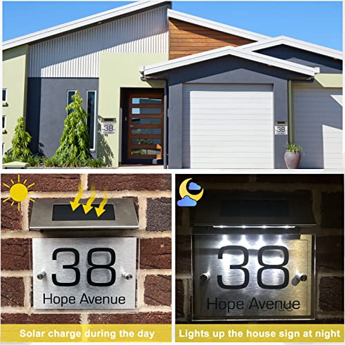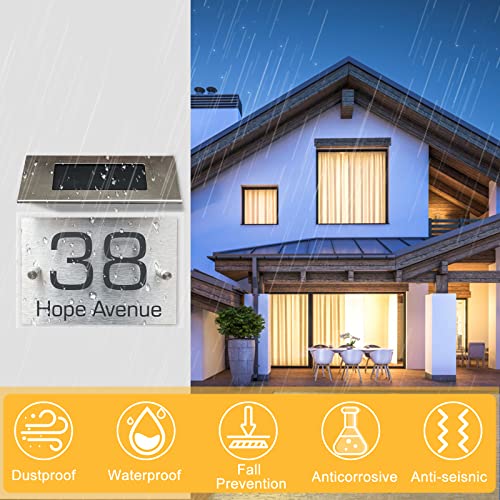 Aicharynic Numero Civico Solare Illuminato, 4 LED Numero Civico Personalizzato Resistente alle intemperie, Antiruggine, Targa per porta d'ingresso