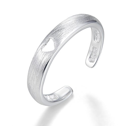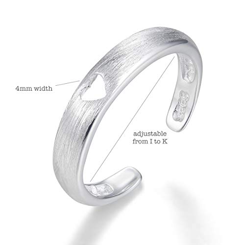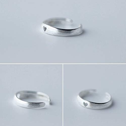 Aichva Grazioso anello piccolo in argento Sterling per ragazze, regolabile, con cuore aperto, idea regalo (opaco, J)