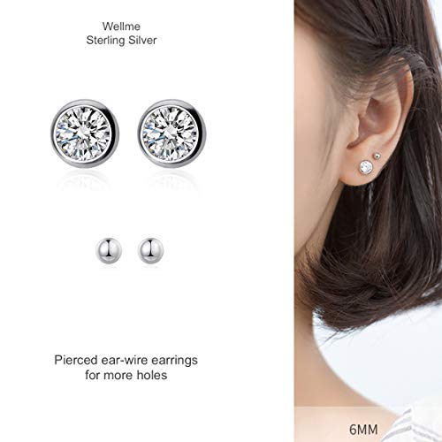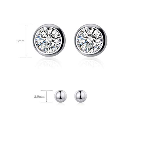 Set di 2 paia di orecchini a perno con zirconia cubica da 6 mm e orecchini a sfera da 2,5 mm.