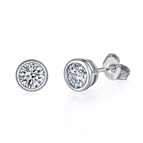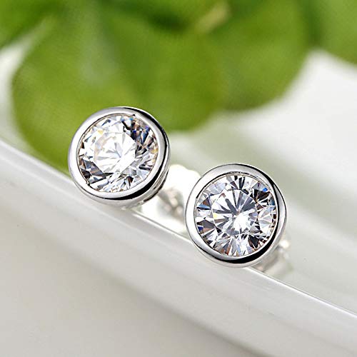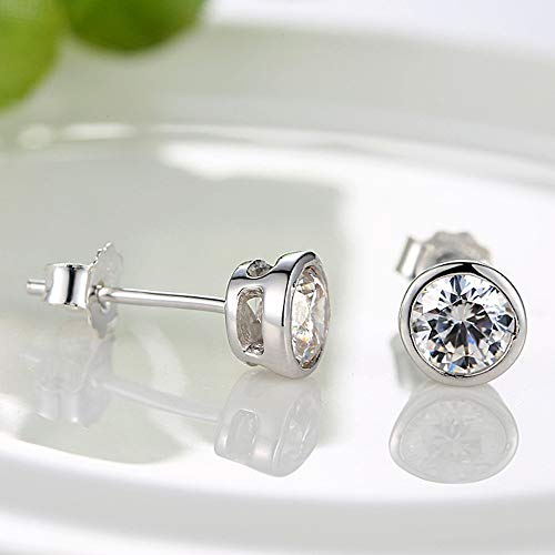 Aichva Set di 2 paia di orecchini a lobo in argento Sterling con zirconi cubici a taglio rotondo da 6 mm