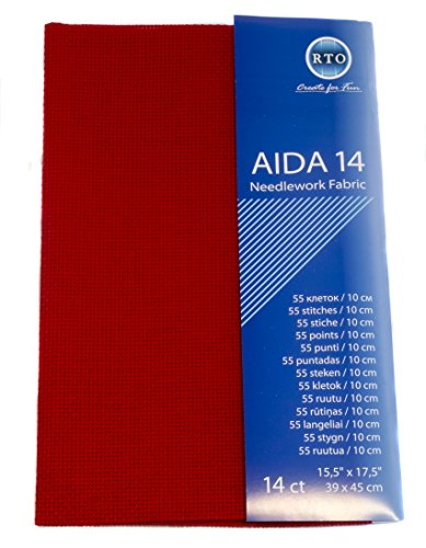 RTO Aida 14 Count, Tessuto in Puro Cotone, Rosso, 39 x 45 cm