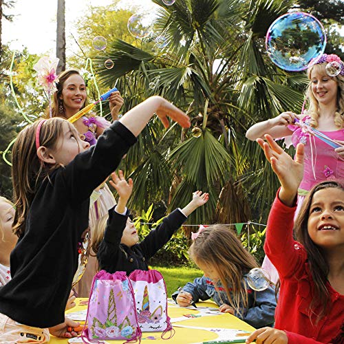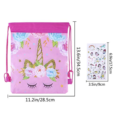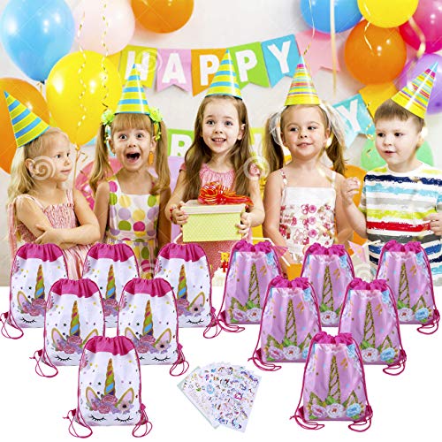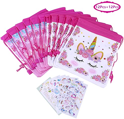 AIDCARE 12 Pack Unicorn Drawstring Party Bags con adesivi Unicorn, unicorno Drawstring Zaini Favore di partito Borse forniture per bambini Festa di compleanno Baby Shower