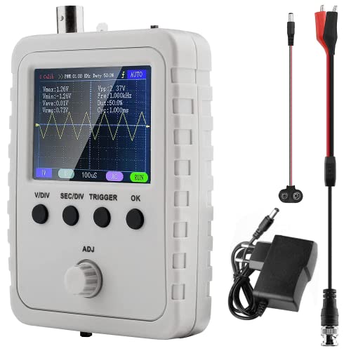 Aideepen Kit oscilloscopio digitale, 2,4" Shell TFT portatile Oscilloscopio portatile con cavo BNC Clip e alimentatore DC/AC saldato, pulsante batteria 9 V
