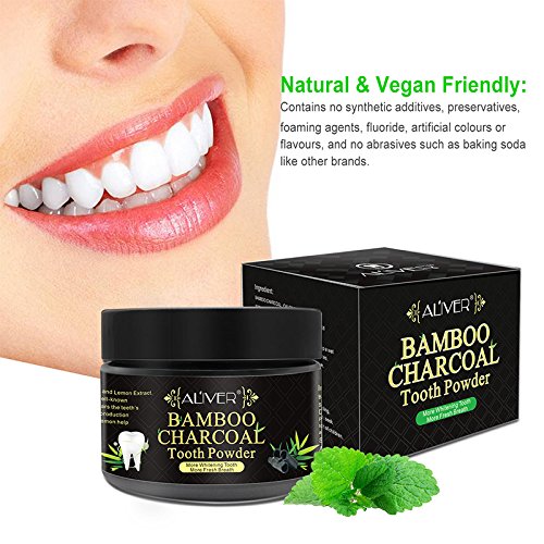 AIDUE Polvere Denti, Naturale Carbone Attivo Sbiancante Denti Charcoal Teeth Whitening Powder rimuove placca Macchie e Contro l'alitosi, 50g