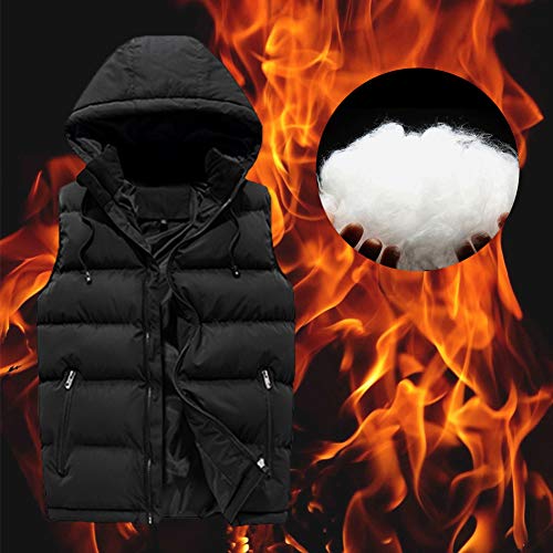 AIEOE Gilet trapuntato da uomo leggero e semplice gilet da esterno con cappuccio rimovibile e tasca interna Nero con cappuccio. M