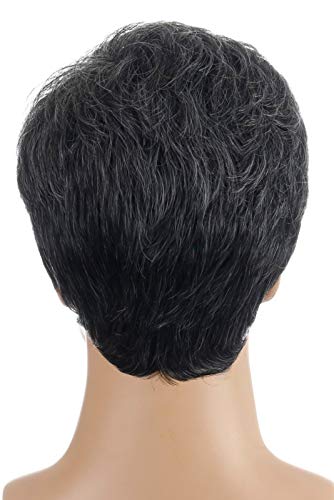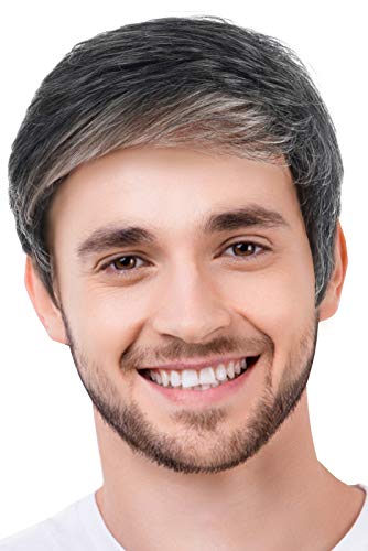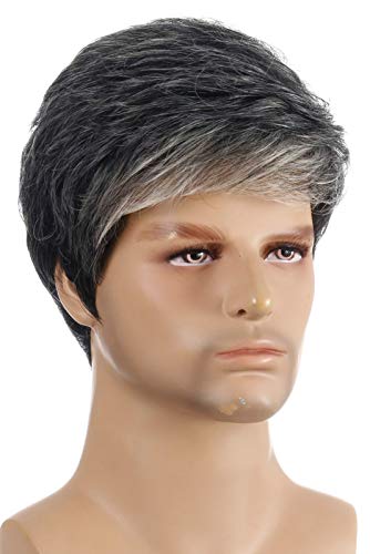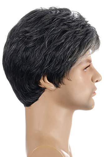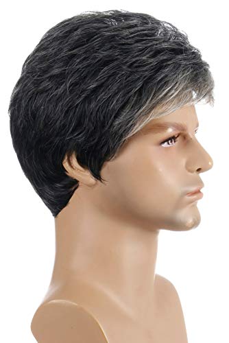 AIEOE Mens Breve Parrucche Sintetiche Naturali Resistente Al Calore Medio Età Matura per Maschio Nero Mix Argento, Nero misto., Taglia unica