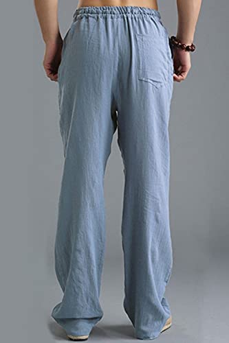 AIEOE Pantaloni Uomo Cotone e Lino Estivi Leggero Traspirante Pantaloni a Gamba Dritta Elastico in Vita con Coulisse Pantalone da Spiaggia Yoga