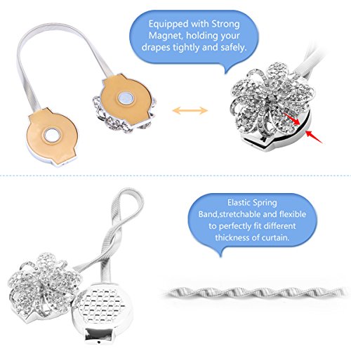 Fatto di lega di zinco ecologica di alta qualità e strass, ogni fermatenda decorativo è confezionato singolarmente, adatto per decorare le tende degli interni.