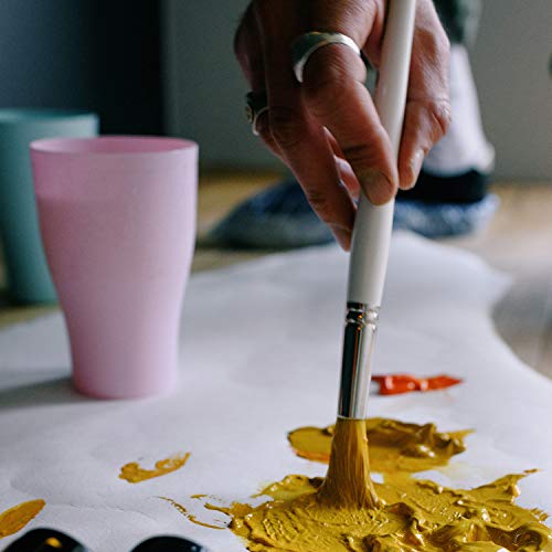 【Setole anti-spargimento】 Queste spazzole acriliche sono progettate con setole anti-shedding, ferrule in ottone nichelato, senza sfocato di vernice o setole.Questi pennelli sono adatti per un mezzo diverso, come acquerelli, acrilici, gouaches, petrolio, tempera, ecc.
