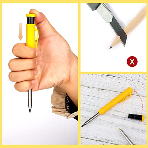 AIEX 2 Pezzi Matite Carpentiere, con Temperino Set di Matite per Carpentiere Solide Automatiche Incluse 20 Ricariche per Matite per Lavorazione del Legno Marcatura Disegno (Nero, Giallo, Rosso)