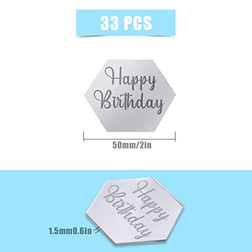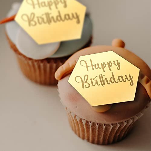 AIEX 33 pezzi Topper per Cupcake in Acrilico, Disco di Buon Compleanno in Acrilico Topper per Cupcake in Acrilico a Specchio, Mini Topper per Cupcake in Acrilico (Oro, Argento e Oro Rosa, Esagono)