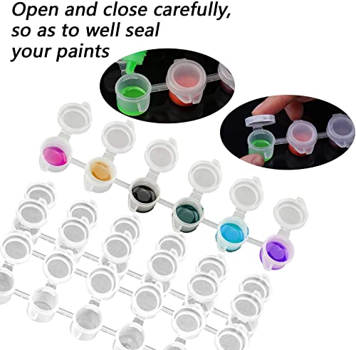 【La confezione include】 Riceverai 20 strisce di barattoli di vernice vuoti, 6 barattoli per striscia, per un totale di 120 barattoli. Ogni vaso misura 2,1 x 2 cm e ha una capacità di 5 ml / 0,17 once.