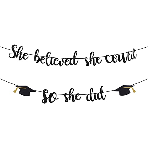 AIEX Striscione di Laurea 2023, Glitter Striscione Lettera di Laurea She Believed She Could So She Did Banner, Decorazioni di Laurea per Ragazze Festa di Laurea Bomboniere (Nero)