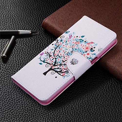 AIFILLE Bianca Cover a Libro per Xiaomi Redmi Note 9 PRO Albero delle Farfalle Antiurto Protettivo Custodia in Pelle PU e Silicone TPU Morbida Rigida Portafoglio Ragazza Flip Accessori per Cellulari