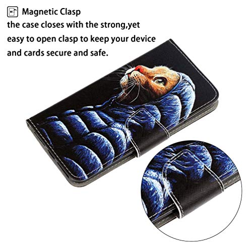 AIFILLE Compatibile con Nero Cover Oppo A5 2020 Portafoglio Pelle PU Rigida e Silicone Morbida Bumper Antiurto 360 Protettiva Disegni Gatto Ragazzo Animali Custodia a Libro per Oppo A5 2020