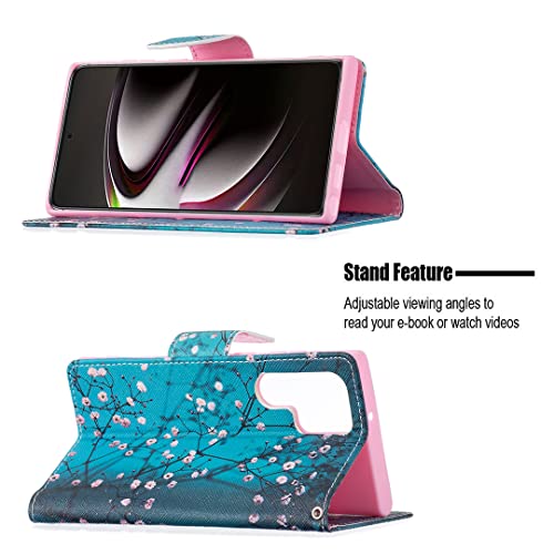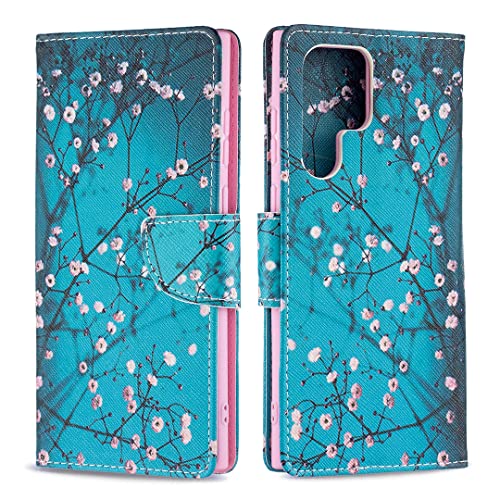 AIFILLE Custodia Compatibile per Portafoglio Samsung Galaxy S22 Ultra Blu Antiurto Protettiva in PU Pelle Silicone Originale Modello Fiore Rosa Flip Cover con Chiusura Magnetica e Funzione di Supporto