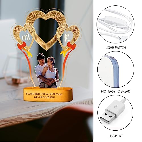AIFLM Luce Notturna 3D Acrilica Personalizzata Incisione di Testo con Foto Lampada di Base in Legno Decorazione Della Scrivania e Della Camera da Letto