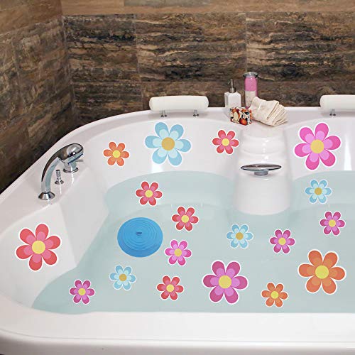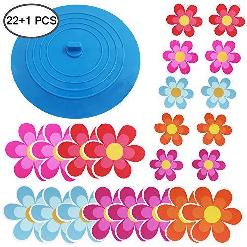 AIFUDA 22 Pezzi Floreale Antiscivolo Adesivi per Vasca con 1 Tappo per Vasca, Appliques Decalcomanie adesive per la Sicurezza della Tua Famiglia, Misura per Bagno, Doccia, Vasca da Bagno