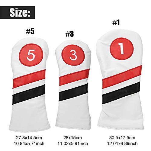 Aigend Putter Headcovers, 3 Pezzi Bianca PU Leather Waterproof Club Cover Wood Club Head Cover Set