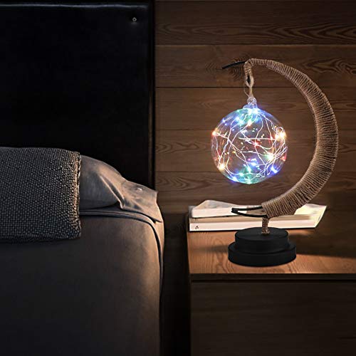 Aigid Luce Notturna Palla di Vetro Luna Decorazione Artistica in Ferro Luce Notturna con Lampada a Filo di Rame a LED Senza Batteria