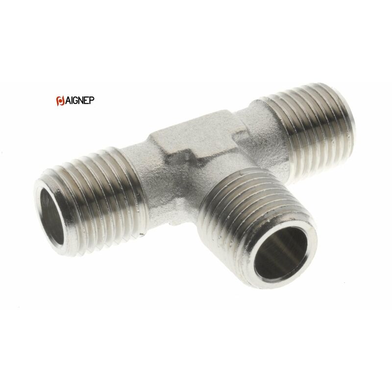 AIGNEP RACCORDO ARIA COMPRESSA A T MASCHIO FILETTATO ESTERNO IN METALLO 4010 CARATTERISTICHE TECNICHE N.B. RACCORDO A T MASCHIO AVENTE STESSA MISURA/DIAMETRO IN TUTTI I LATI DI INNESTO. MATERIALI E COMPONENTI Robustezza meccanica Realizzati in ottone nichelato Per aria compressa, automazione pneumatica, vuoto Per tubi e raccordi in genere Filettatura gas E possibile utilizzarli anche in spazi molto ridotti.