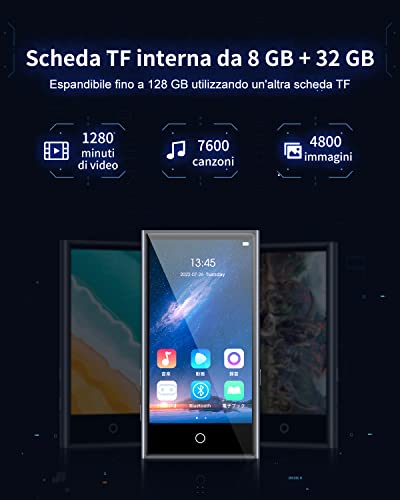 Aigo Lettore MP3 40GB Bluetooth 5.0 Schermo Tattile da 3,0 Pollici MP4 MP3 Lettore Musicale Sport Portatile Lossless HiFi Lettore Audio Digitale con Altoparlante