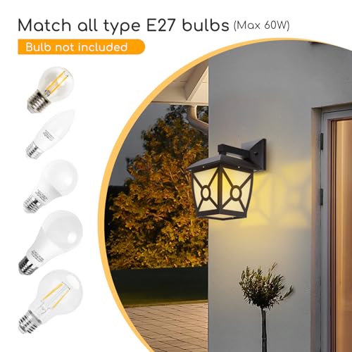 Aigostar Applique da Esterno E27 Lampade da Esterni Impermeabile IP44 Appliques da Esterni con paralume trasparente per balconi, corridoi, Classico A (lampadine non incluse)