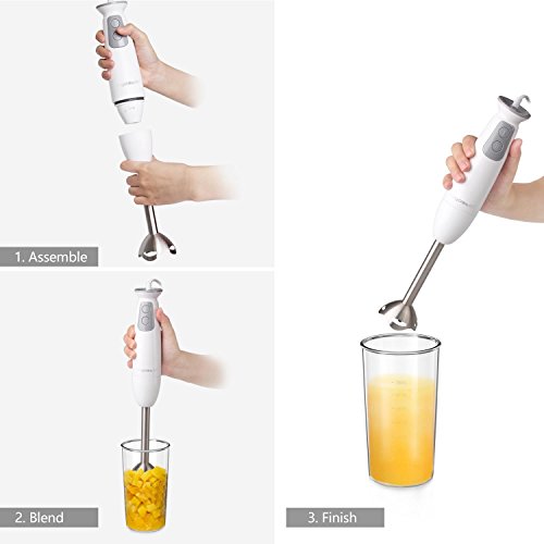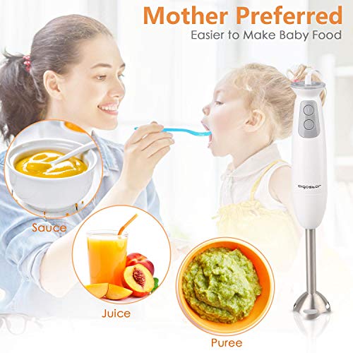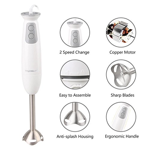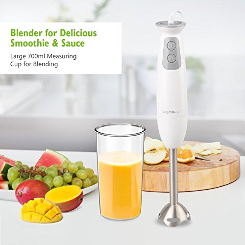 Aigostar Bianco 30ISF - Frullatore ad immersione con bicchiere da 700ml, 2 Velocità, plastica di alta qualità ed acciaio inossidabile 304, 400W, BPA Free, bianco, design esclusivo.