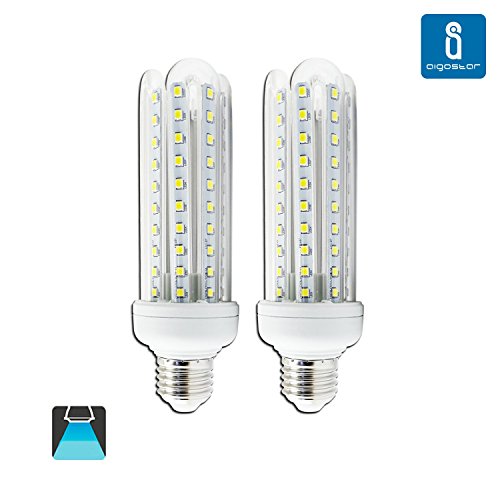 Aigostar - Confezione da 2 Lampadine LED B5 T3 4U, 15W, Attacco Grande E27, 1200 lumen, Luce Bianca 6400K [Classe di efficienza energetica A+]
