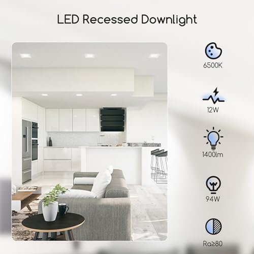 【Risparmio energetico e alta efficienza】 Ultra-sottile LED faretti, il suo consumo di energia di 12W è equivalente a 116W di una vecchia lampadina a incandescenza, e la luminosità è 1400lm, che può risparmiare le bollette della luce. La sua durata di vita è più di 20000 ore ed è durevole nell'intervallo di temperatura da -20°C a 45°C, quindi non c'è bisogno di preoccuparsi della frequente sostituzione dell'attrezzatura.