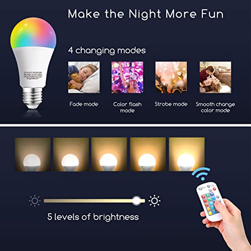 Aigostar 60W Equivalente Lampadine Colorate LED, RGBW Cambiare Colore Lampadina E27 8W, RGB LED Lampadine a 4 Modalità, 5 Livelli di Luminosità, 15 Colore, 1 Telecomando Incluso. Confezione 2 unità