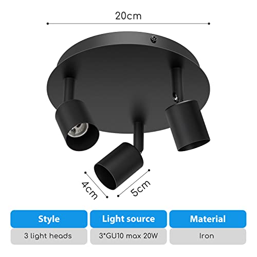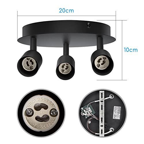 Aigostar Faretti da Soffitto Orientabili,Plafoniera LED con 3 Faretti GU10 Base, ø 200mm,Lampadario da Soffitto per interno cucine, soggiorni, camere da letto, ect (Senza lampadina)