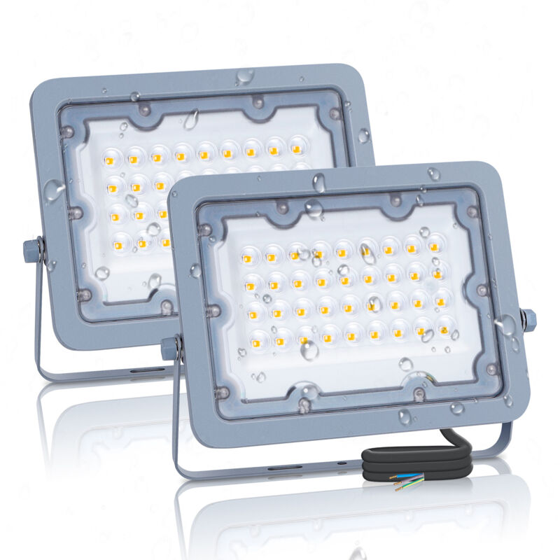 Aigostar LED Esterno, Proiettore da esterno 30W 3000K, Proiettore da esterno 2700LM impermeabile IP65 per cortile, giardino, garage, 2 pezzi