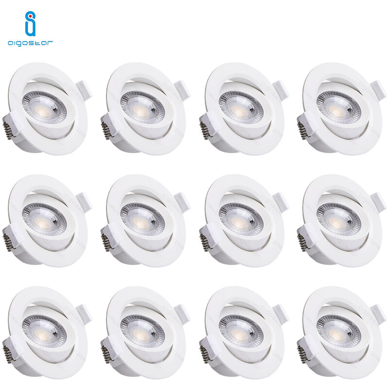 Kit 12x Faretti LED orientabili 5W | Aigostar Faretto LED orientabile da incasso, 5 Watt 6500K, dalla luce brillante con basso consumo d'energia, ideale per avere più punti luce, risparmiando in bolletta. Design e LED di alta qualità Il corpo del faretto è ultra sottile (appena 44mm), la parte orientabile permette di direzionare il fascio di luce in base alle esigenze (+30° a destra, +30° a sinistra). I chip LED di alta quaalità garantiscono comfort visivo, senza sfarfallio né abbagliamento. Inoltre la resa cromatica è ottimale (≥80), così da illuminare, mantenendo i colori naturali e realistici. Facile installazione Grazie alle clip a molla integrate può essere facilmente alloggiato all'interno della controsoffittatura o negli spazi preposti. Specifiche Colore: Bianco Tipo: Orientabile Modello: Circolare Colore luce: Bianco freddo Dimensioni: D90xH44mm Dimensioni foro: D75-80mm Consumo: 5W Voltaggio: 220-240V Corrente: 45mA Frequenza: 50hz Temperatura colore: 6500K Flusso luminoso