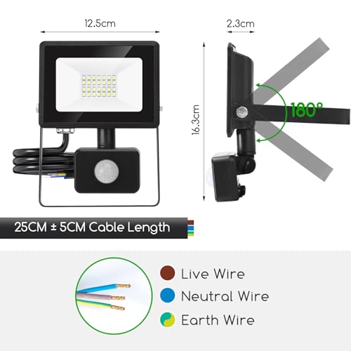 【SUPER LUMINOSO E RISPARMIO ENERGETICO】l faretti led esterno adottano i nuovi LED integrata e la tecnologia sigillata SMD per offrire un'illuminazione più brillante (20 W) fino a 2050 lumen di luce. l'illuminazione bianco freddo 6500K offre una luce morbida e uniforme. Eccellente sostituzione dei lampada alogena tradizionale da 205 W, risparmiando oltre l'85% dei costi dell'elettricità.