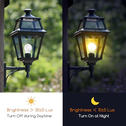 【Sensore di luce】 Il sensore integrato in questa lampadina accenderà automaticamente la lampadina di notte e la spegnerà all'alba con un tempo di induzione di 6 secondi ± 2 secondi.