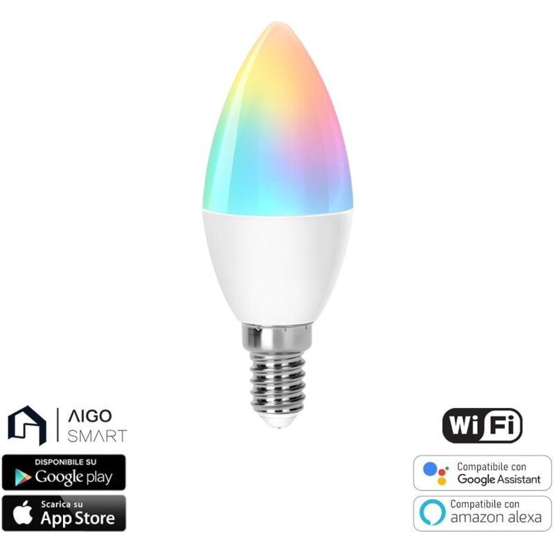 LAMPADINA LED SMART WIFI E14 G45 6.5 W ALEXA GOOGLE HOME 2 PEZZI RGB+2700K-6500K Tipologia:Lampadine smart Adattatori per lampadine:E14 Dimensioni:D37*H107mm Massima potenza:6.5W CCT:RGB+2700K-6500K Flusso luminoso:555lm Voltaggio:220-240V~ DF(DF):≥0.5 Modalità di configurazione Wi-Fi:WIFI + Bluetooth Intensità corrente:19mA Frequenza:50/60Hz CRI:Ra≥80 Angolo di illuminazione:250° Hg%:0 0 0 0 0 Consumo di energia per 1.000 ore:7kwh/1000h Equivalenza lampada incandescente:45W EEI:F Colore della luce:Da luce calda a luce diurna+RGB Colore:Bianco Modello:C35 Ambiente:Interno Temperatura:-20℃~40℃ Durata:25000h N. test interruttore:7500times Materiali principali:Plastica