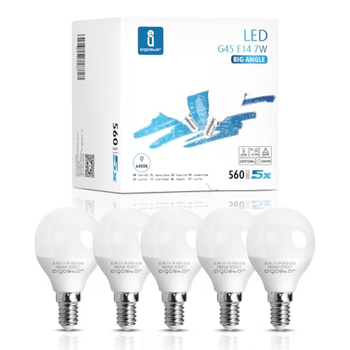 Aigostar - Lampadine LED E14, 7 W Equivalenti a 49 W, Luce Bianca Fredda 6500K, 620 Lumen, G45 Lampadina, Pacco da 5