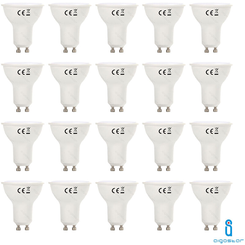 Set di 20x Lampadina LED GU10 3W - Serie A5 | Aigostar La serie di lampadine LED Aigostar - A5 garantisce prestazioni eccellenti: materiali e chip LED di alta qualità, per garantire una luce uniforme, liscia e priva di abbagliamento. Classe di efficienza energetica: A+ La lampadina è disponibile con 2 temperature di colore: Bianco caldo (3000K) e Bianco freddo (6400K) . Specifiche Colore: Bianco Attacco: GU10 Potenza: 3W Potenza equivalente a incandescenza: 20W Voltaggio: 230V Corrente: 30mA Frequenza: 50Hz Vita media: 25.000 h Ciclo di commutazione (numero cicli accensione/spegnimento): 12.500 Flusso luminoso: 195 lm (6400K) / 180 lm (3000K) Indice di resa cromatica RA: ≥ 80 PF: >0.4 Colore della luce: Bianco freddo / Bianco caldo Temperatura di colore: 6400K / 3000K Fascio luminoso: 120° - 160° Protezione IP: IP20 Classe di efficienza energetica: A+ Dimensioni:D50*H55mm