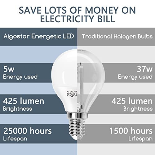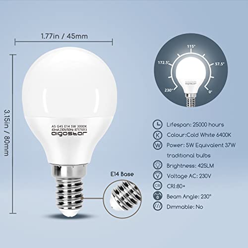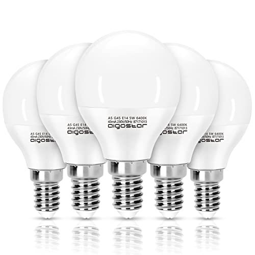 Aigostar Lampadine Led E14 Luce Fredda 6400K,5W Equivalenti a 37W,425 Lumen,Mini Globo Lampadina G45,Non Dimmerabile,Confezione da 5