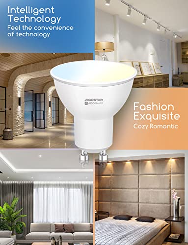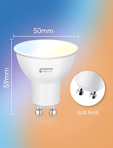 Aigostar Lampadine Smart Alexa GU10 SL2 Lampadina WIFI LED 6W 510LM, Lampadine Intelligenti Dimmerabile 2700K-6500K Bianco Freddo Caldo, compatibile con Alexa/Google Home, 4 Unità.