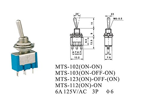 Aihasd 10PCS Mini interruttore a levetta unipolare MTS-102 6A 125V 3A 250V 3 piedi 2 marce